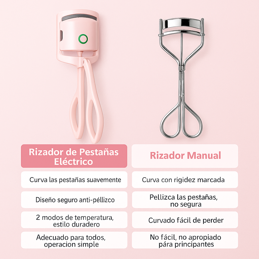 ✅Curvatura que dura todo el día ✅Sin riesgo de quemaduras ni pérdida de pestañas ✅Diseño portátil, se carga por USB ✅No necesita rímel ni químicos ✅Fácil de usar, incluso si nunca rizaste tus pestañas antes