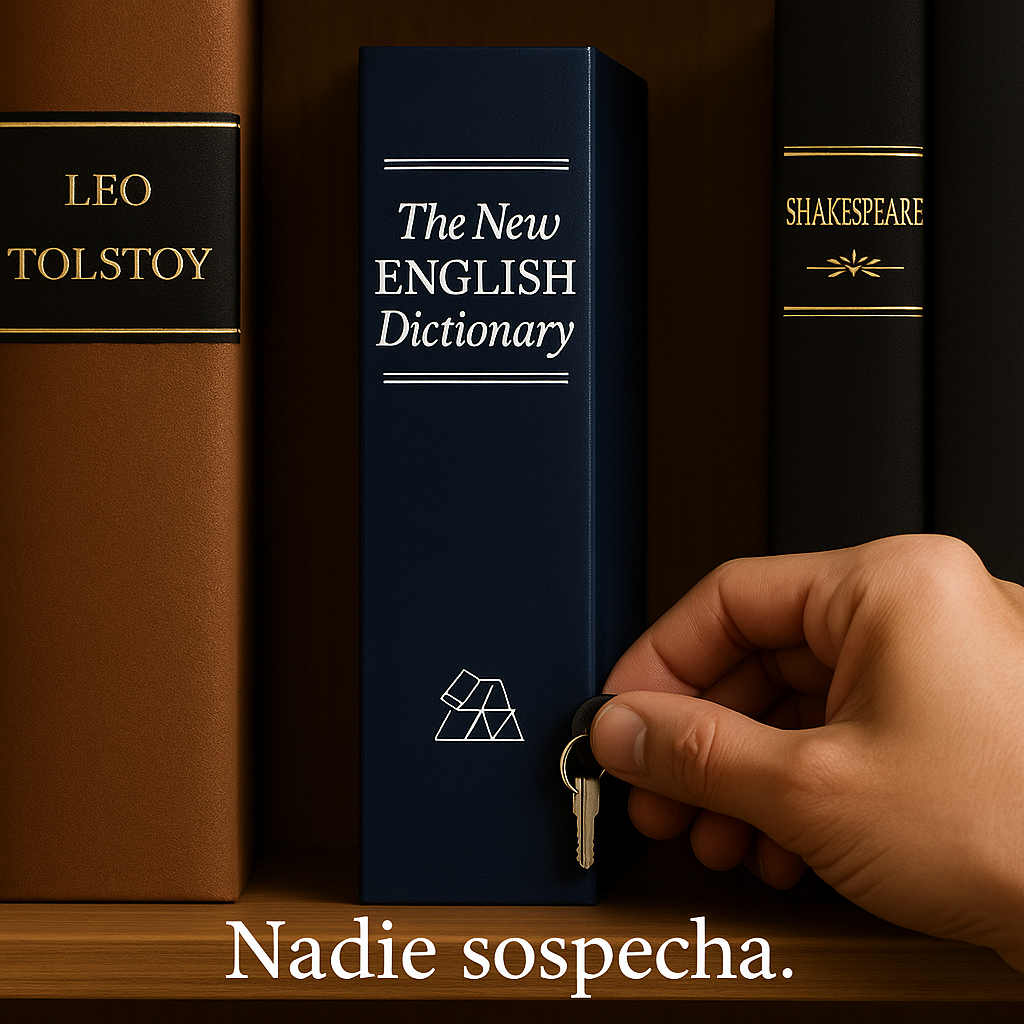 Aquí entra en juego el Libro Cofre SecuriBook: Un diccionario por fuera, pero con el interior de una caja fuerte de acero con llave. Nadie sospechará que dentro de este libro clásico se esconden tus pertenencias más valiosas.